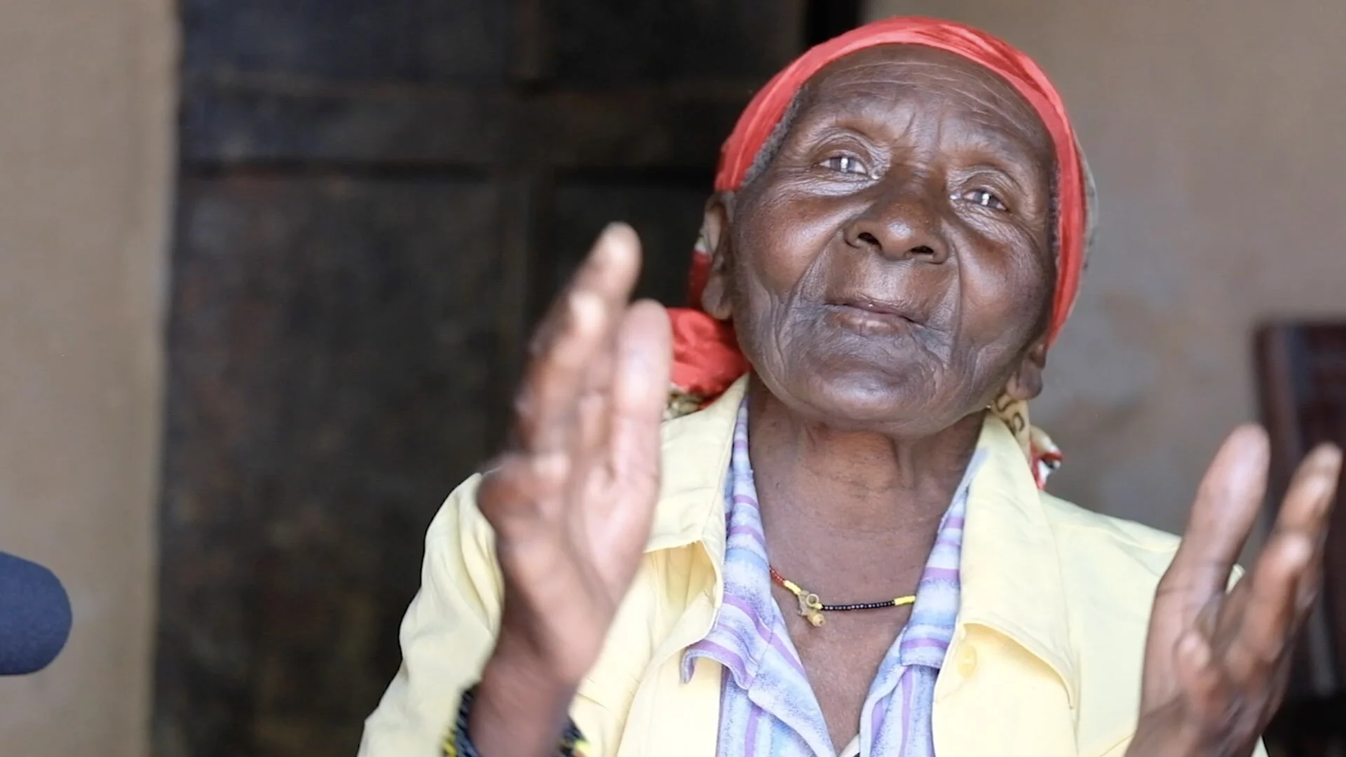 Veronique doesn’t know how old she is but she guesses she’s over 80. She lives in Butembo and the disease ravaged her family in a matter of days. She lost nearly all her family and got sick with Ebola herself but recovered. She now looks after her two grandchildren who were orphaned when their mother died of the disease.