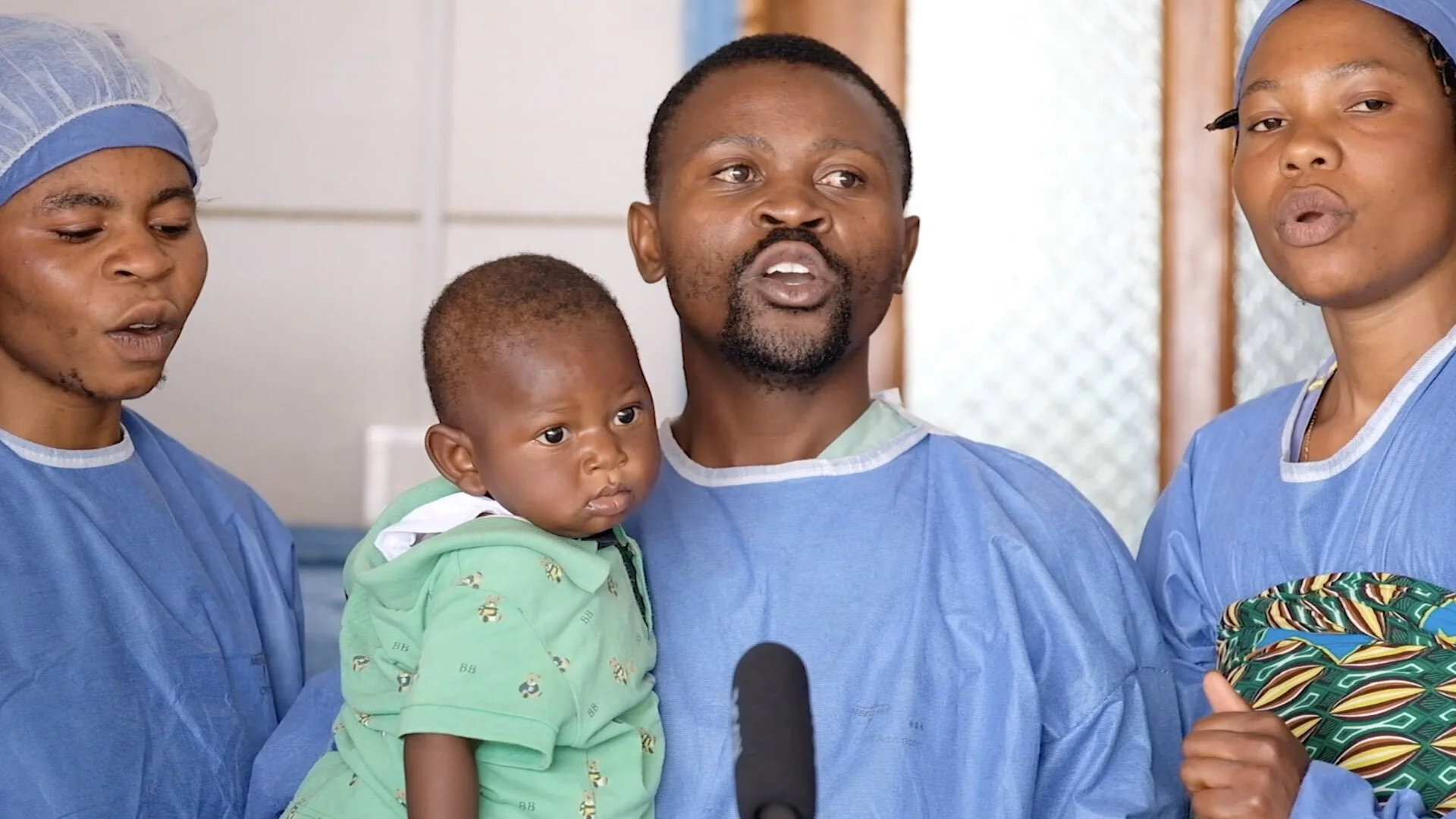 This is him singing a spiritual song with his fellow caregivers at the creche in Katwa near Butembo.